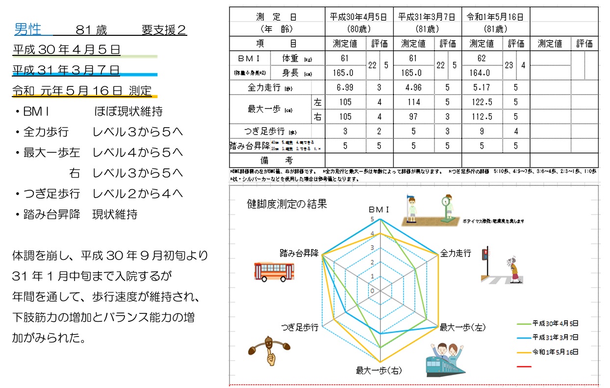転倒予防運動を続けてきて、体力(健脚度)測定会の数値でもその効果は見えてきますが、実生活の中で感じられることがあると素晴らしいですよね。