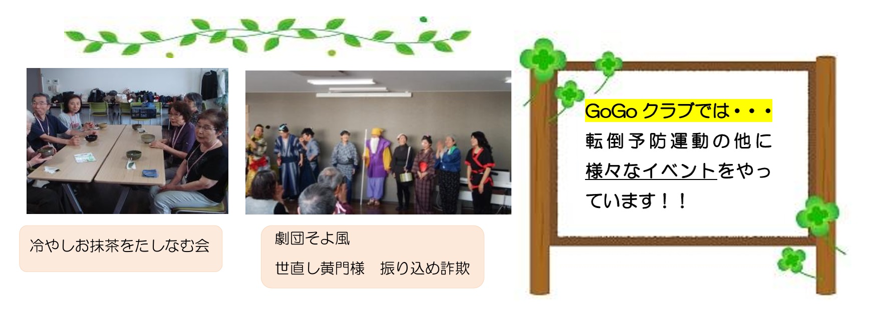 多くの体操教室は運動が目的のため一般の高齢者にはハードルが高すぎたり、 その後の仲間づくりにまで結びつかない事が多いと思います。GoGoは自分としては元気な方に焦点を合わせずに